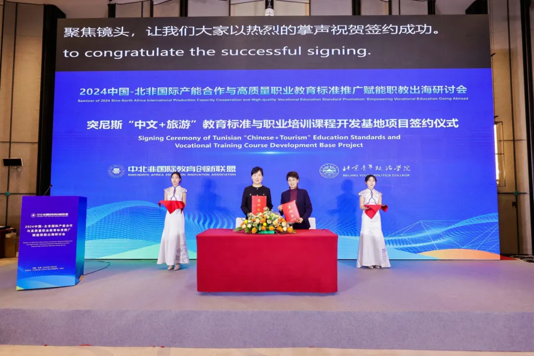 中北非国际教育创新联盟、北京青年政治学院双方代表上台签约