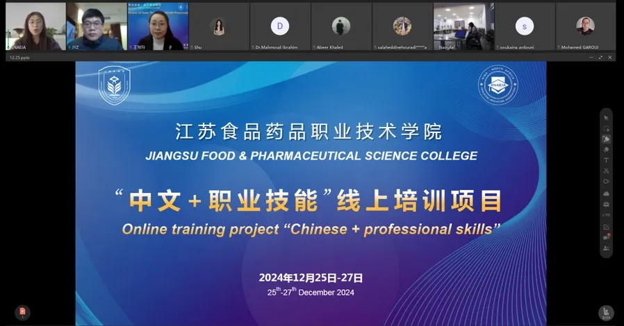 Jiangsu Food & Pharmaceutical Science College conducted six training courses, including “Hello, Chinese”, “Chinese Seasons, Health and Food”, “The Development History and Modern Application of Functional Red Mold Rice”, “Research Progress of Functional Oligosaccharides in Food Industry”, “Research Progress and Application of Biological Control of Postharvest Diseases in Fruits and Vegetables”, and “Food Safety and Preventive Measures for Potential Hazards”. About 500 teachers and students from relevant majors from Tunisia, Morocco, Egypt and other countries signed up to participate in the training.